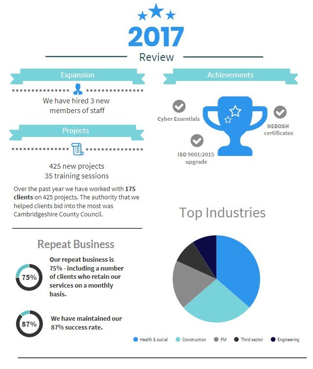Two members of the bid writing team gained their NEBOSH certification. As a company we have achieved Cyber Essentials Plus and ISO 9001:2015 upgrade.