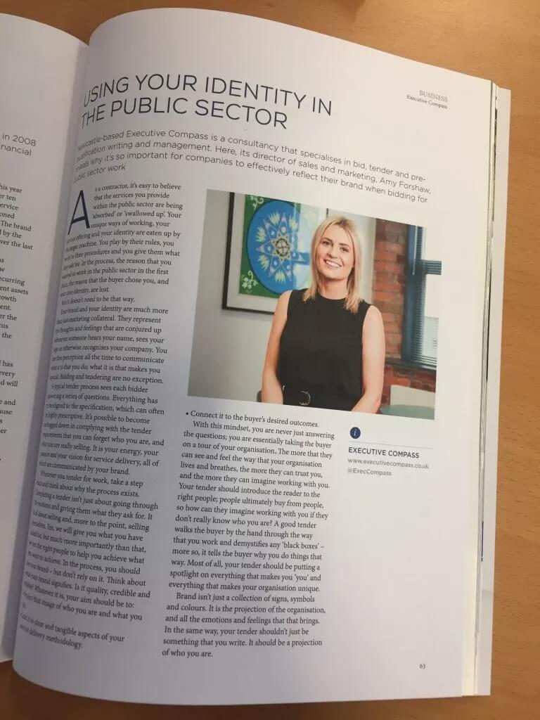 Executive Compass were featured in the North East Times in the latest issue of the magazine, which focused on the topic of ‘brand’. We discuss how to reflect your brand and identity when bidding for public sector work.